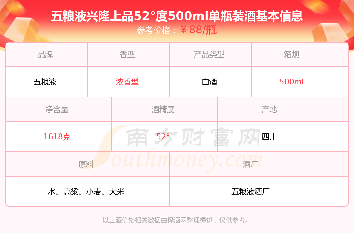 五粮液兴隆上品52°度500ml单瓶装基本信息