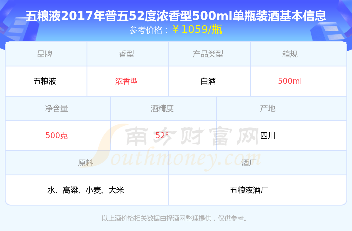 五粮液2017年普五52度浓香型500ml单瓶装基本信息