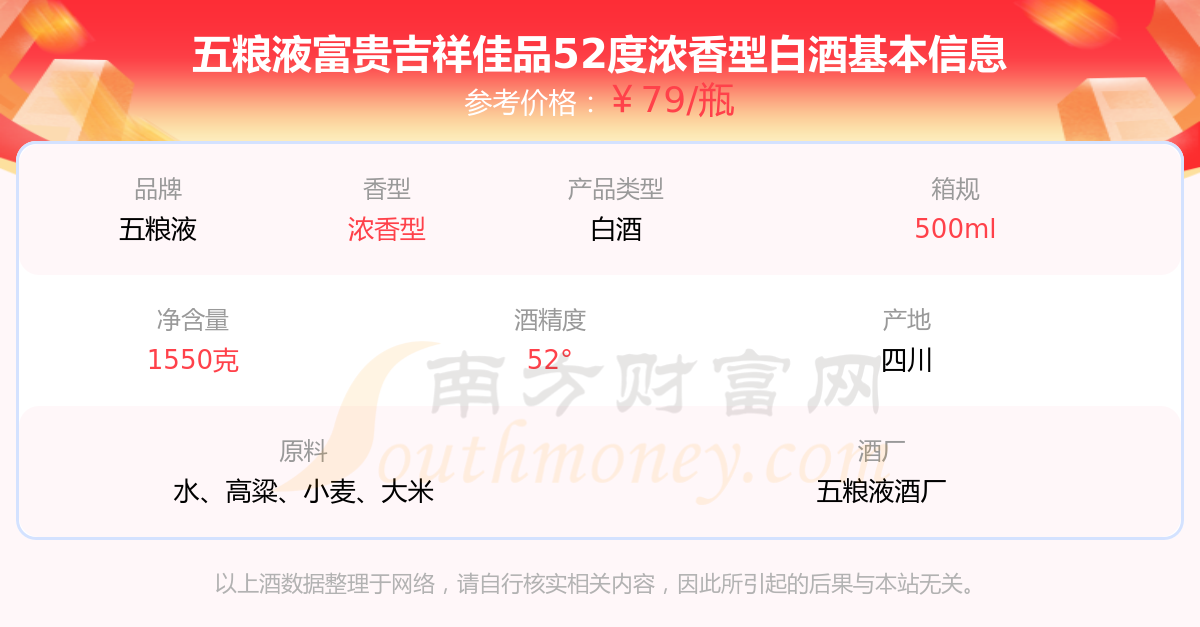 五粮液富贵吉祥佳品52度浓香型白酒基本信息