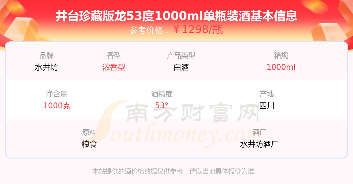 井台珍藏版龙53度1000ml单瓶装基本信息