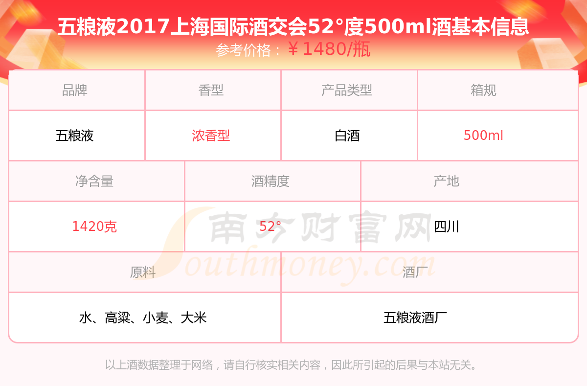 五粮液2017上海国际酒交会52°度500ml基本信息