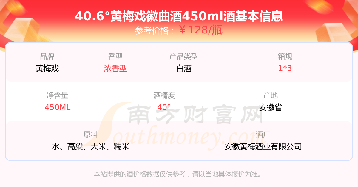 40.6°黄梅戏徽曲酒450ml基本信息