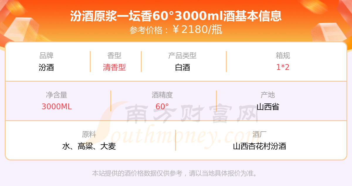 汾酒原浆一坛香60°3000ml基本信息