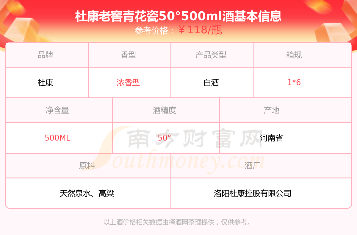 杜康老窖青花瓷50°500ml基本信息