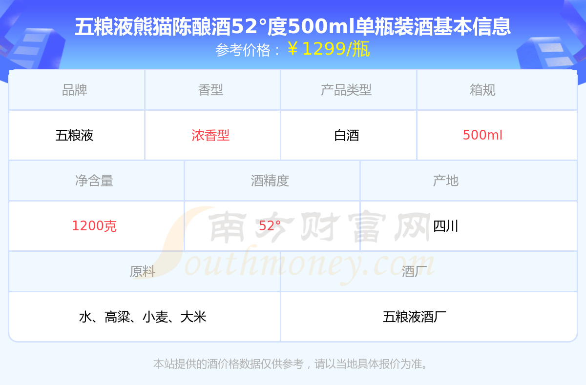 五粮液熊猫陈酿酒52°度500ml单瓶装基本信息