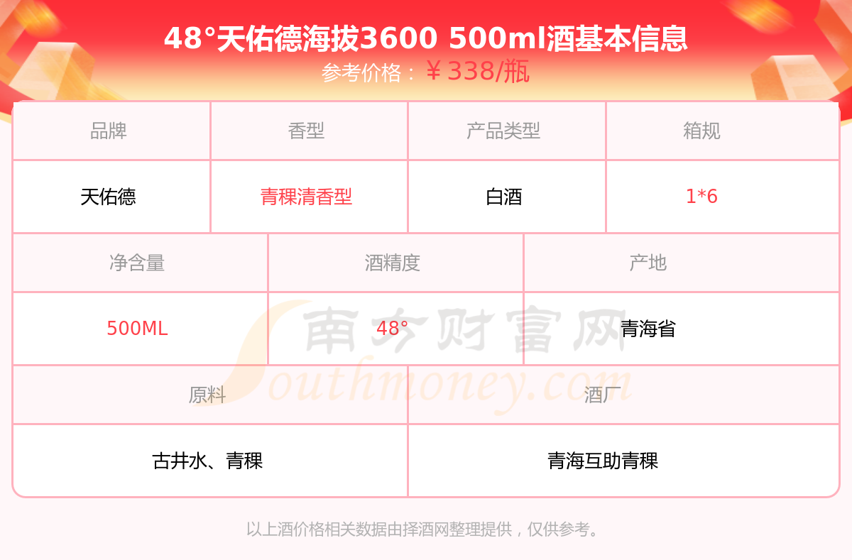 48°天佑德海拔3600500ml基本信息