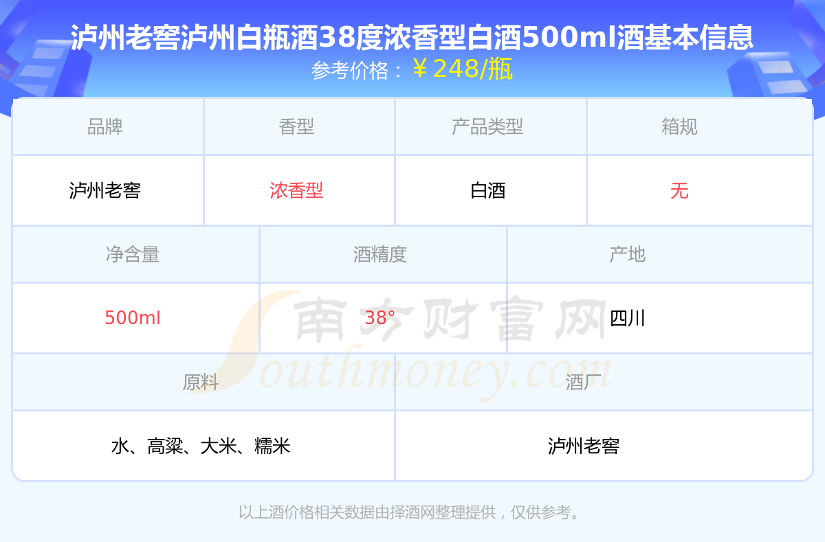 泸州老窖泸州白瓶酒38度浓香型白酒500ml基本信息