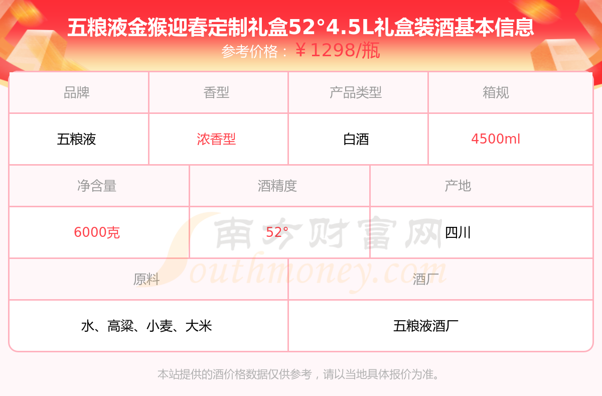 五粮液金猴迎春定制礼盒52°4.5L礼盒装基本信息
