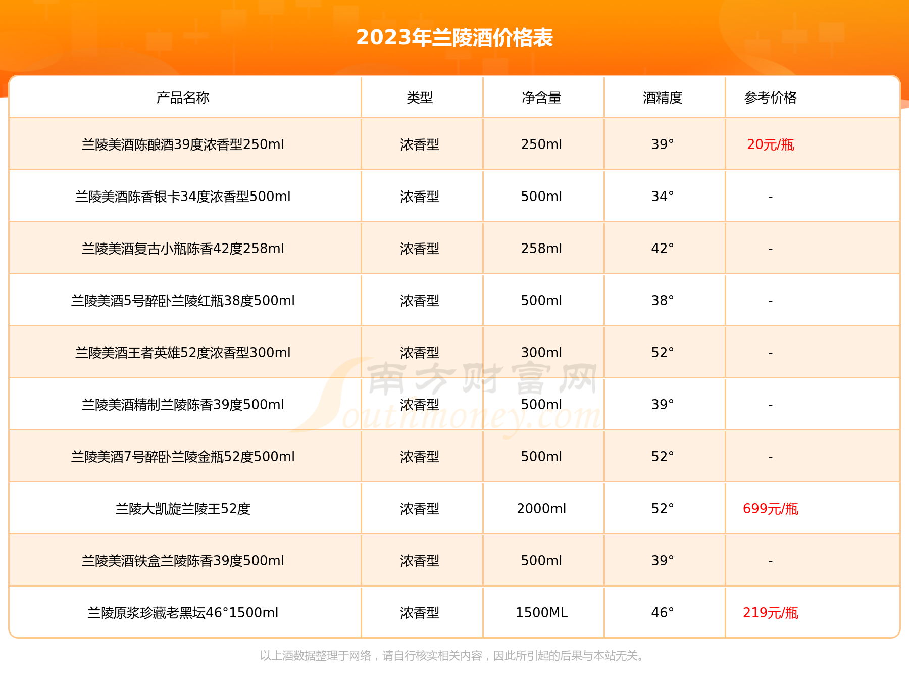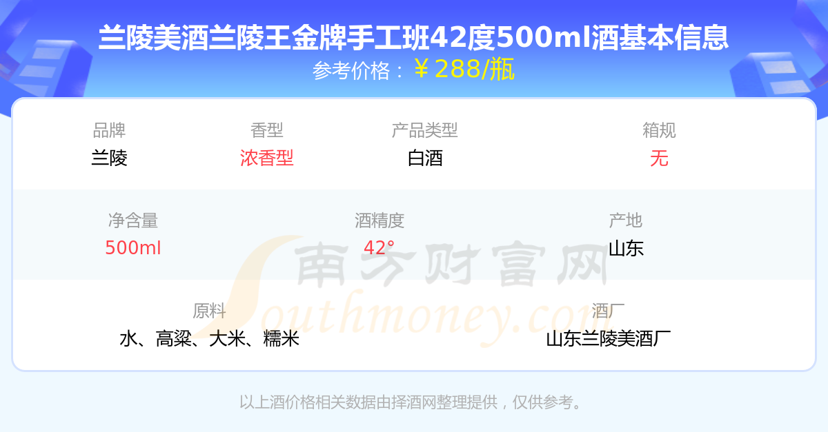 2023年兰陵美酒兰陵王金牌手工班42度500ml酒价格表查询