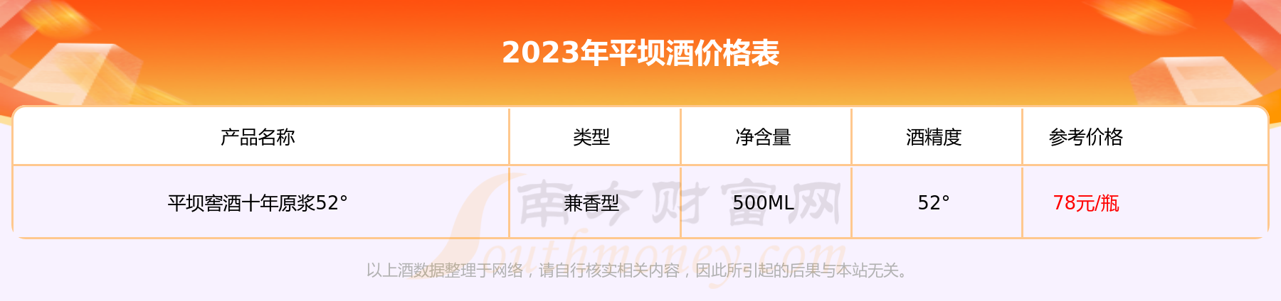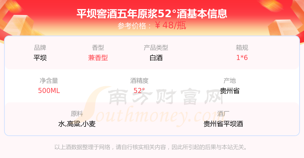 平坝窖酒五年原浆52°基本信息