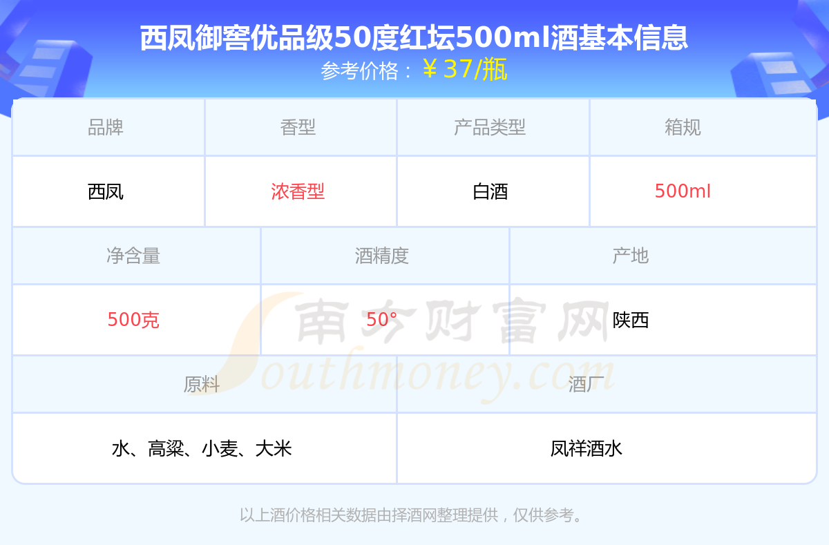 西凤御窖优品级50度红坛500ml基本信息