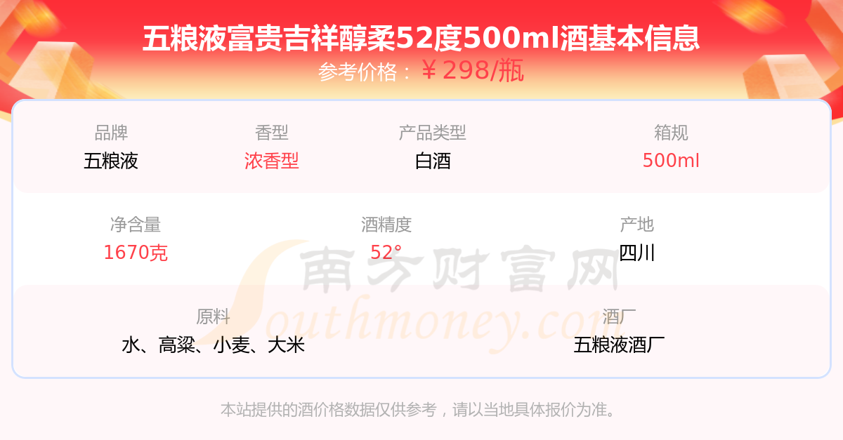 五粮液富贵吉祥醇柔52度500ml基本信息