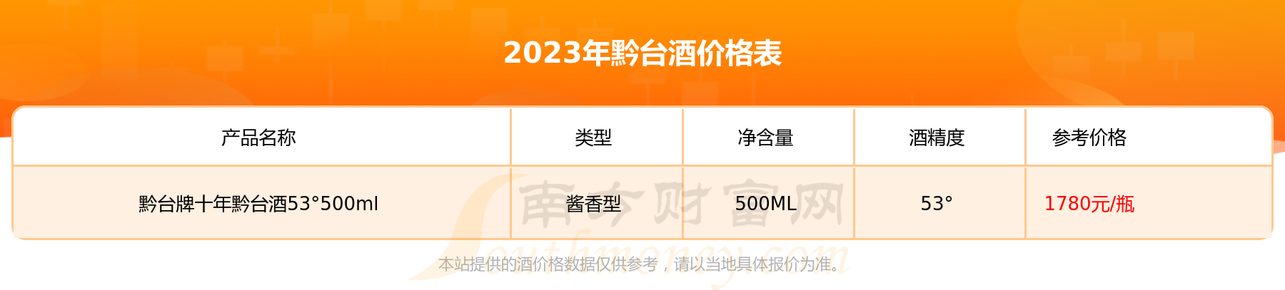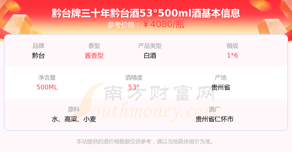黔台牌三十年黔台酒53°500ml基本信息