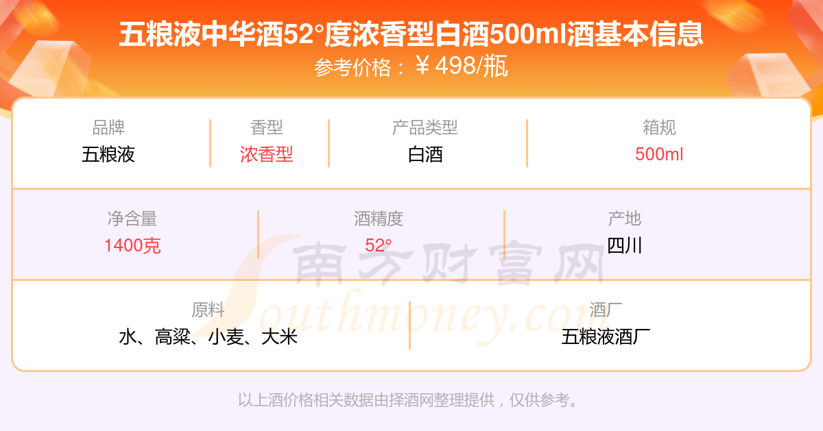 五粮液中华酒52°度浓香型白酒500ml基本信息