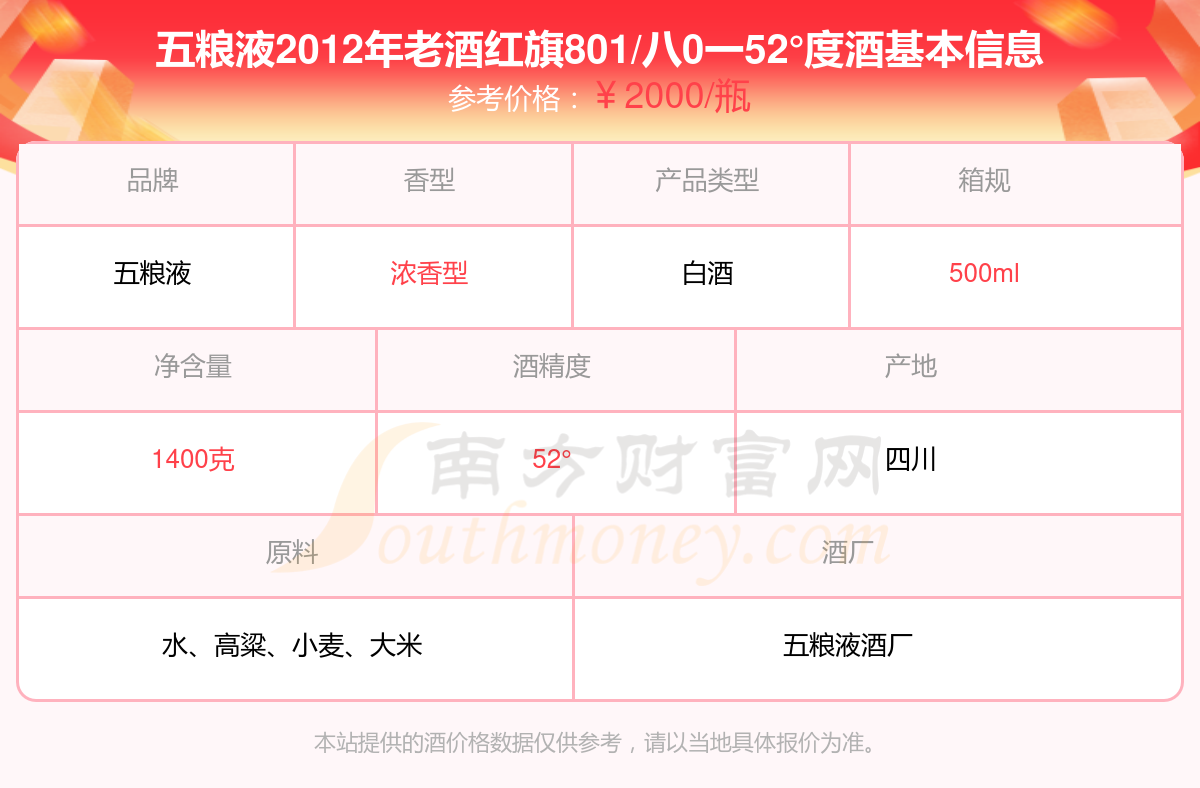 五粮液2012年老酒红旗801/八0一52°度基本信息