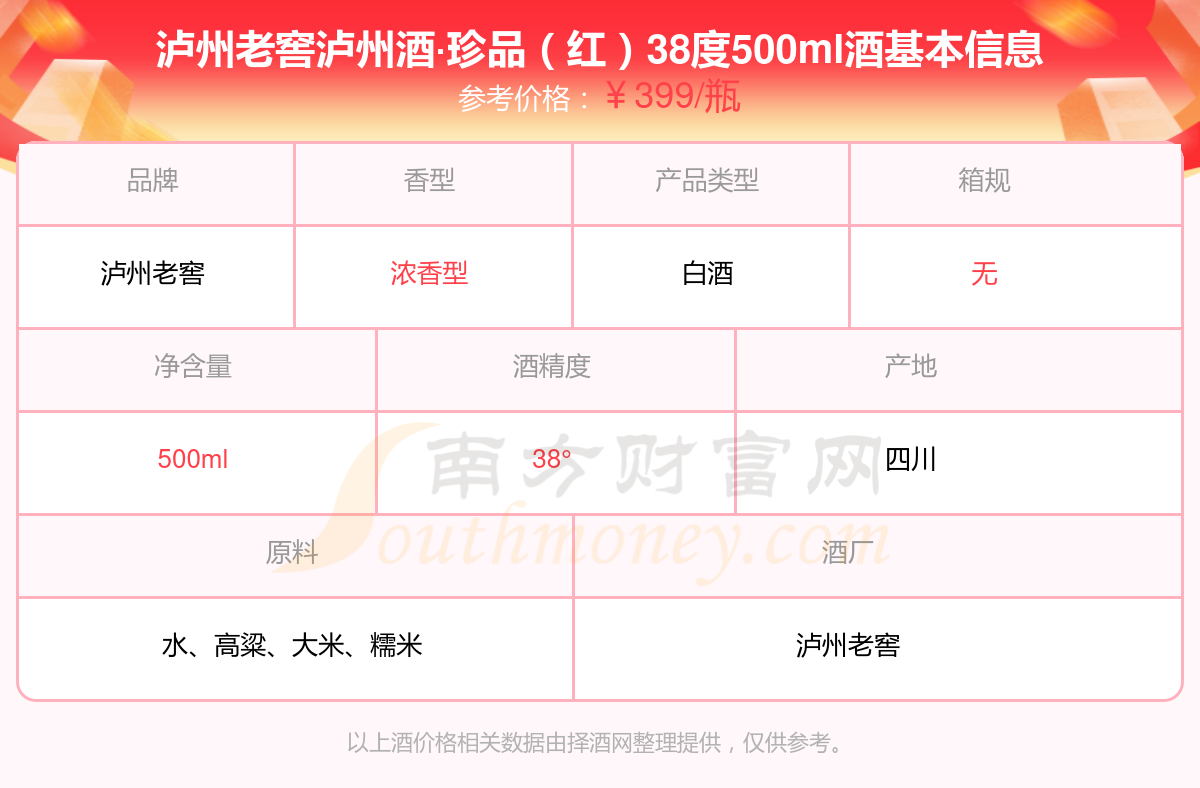 泸州老窖泸州酒·珍品(红)38度500ml基本信息
