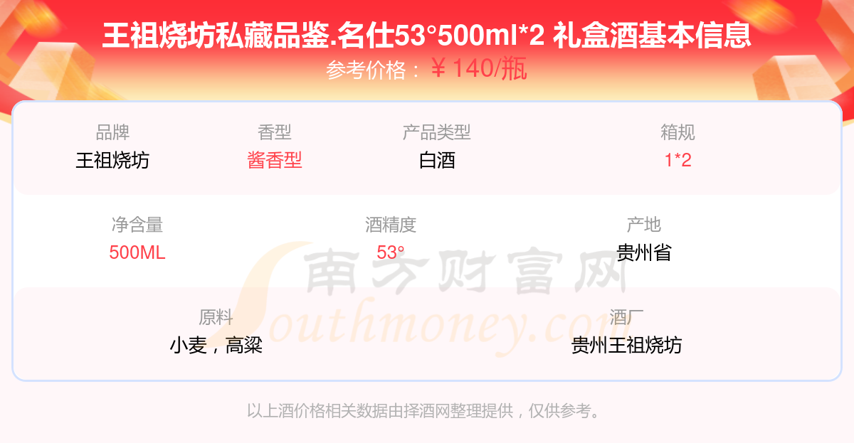 王祖烧坊私藏品鉴.名仕53°500ml*2礼盒基本信息
